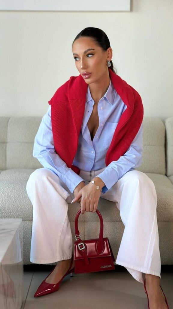 - Tip: Επιλέξτε ένα τζιν σε σκούρο μπλε χρώμα χωρίς σκισίματα για πιο “polished” εμφάνιση.