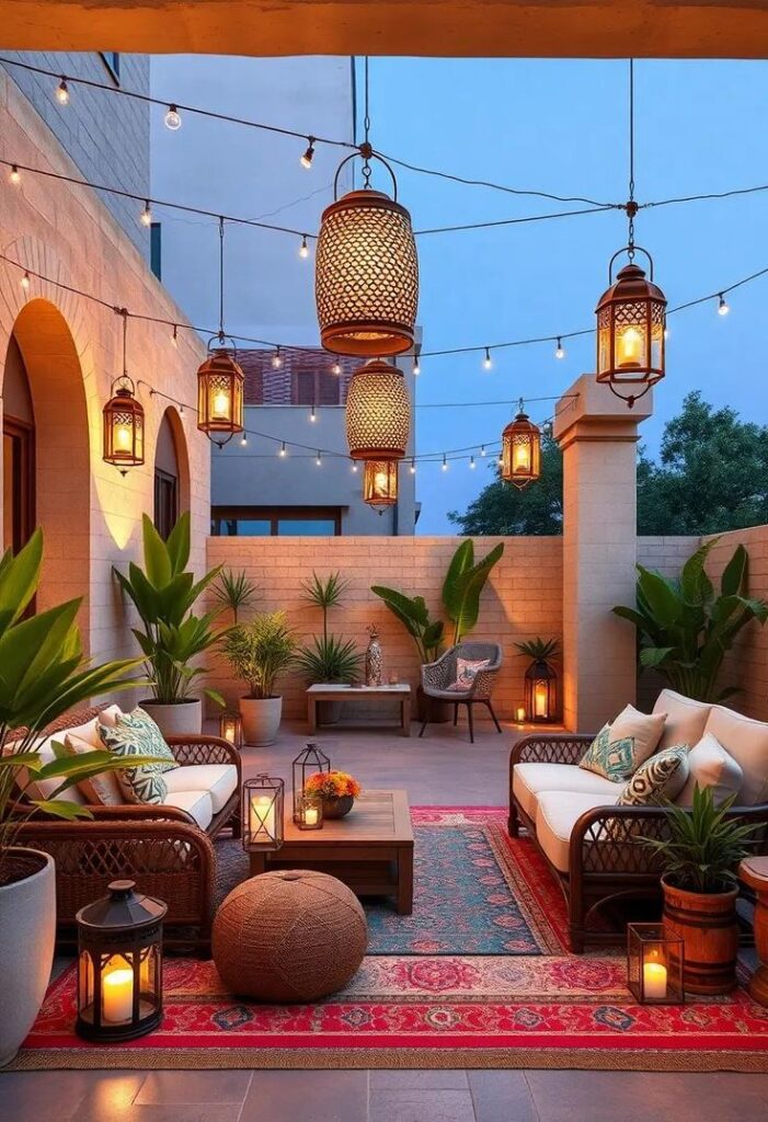 Ο φωτισμός είναι το κλειδί. Τα μεταλλικά φανάρια με τις περίτεχνες τρύπες δημιουργούν μαγικές σκιές στους τοίχους μόλις πέσει το φως, μεταφέροντάς σας αμέσως σε μια σκηνή από τις «Χίλιες και Μια Νύχτες».