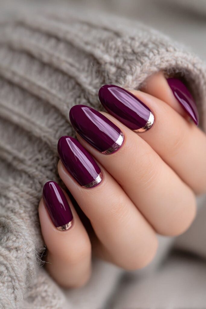 Το burgundy με χρυσές λεπτομέρειες – λεπτές γραμμές, dots ή foil – προσφέρει μια elegant πινελιά. Το χρυσό δένει υπέροχα με τη μπορντό βάση και δίνει στο μανικιούρ μια γιορτινή αύρα. Αν θέλεις να προσθέσεις λάμψη και στο μακιγιάζ σου, δες το άρθρο Τελευταίες τάσεις στα highlighters: Πού να προσθέσεις το φως.