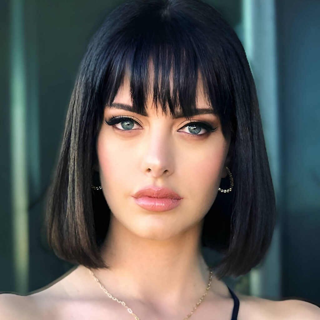 - French bob με αφέλειες: Κοντό καρέ με αέρινες αφέλειες που καλύπτουν το μέτωπο και εστιάζουν την προσοχή στα μάτια.