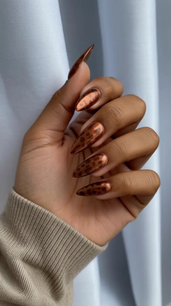 Τα chrome nails επιστρέφουν, αλλά όχι όπως τα θυμόμαστε. Αντί για το εκτυφλωτικό μεταλλικό look του παρελθόντος, η φθινοπωρινή εκδοχή του 2025 είναι πιο σοφιστικέ, μαλακή και atmospheric. Οι αποχρώσεις είναι πιο βαθιές, με «καθρέφτη» λάμψη που θυμίζει το φως του ηλιοβασιλέματος πάνω σε μεταλλική επιφάνεια.