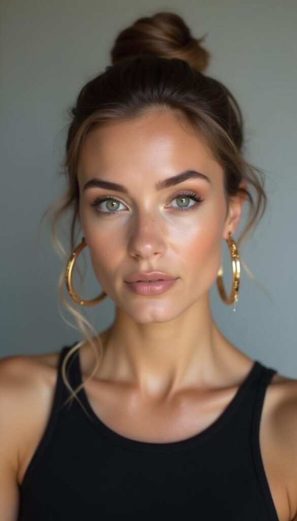 2. High sleek ponytail: Ψηλή αλογοουρά που τεντώνει το δέρμα στους κροτάφους (φυσικό lifting).
