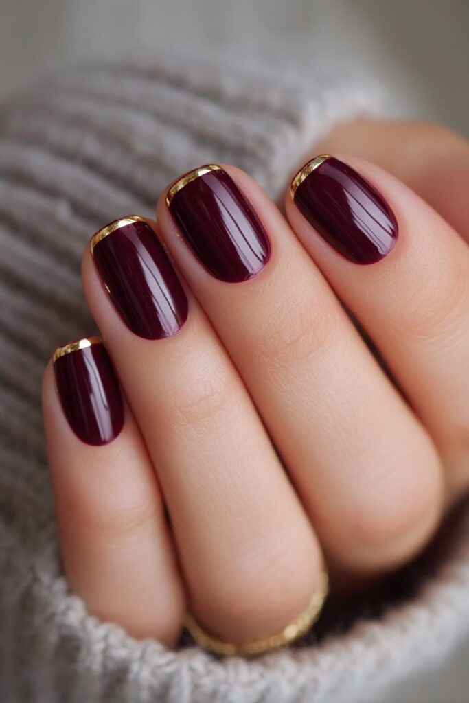 Αν θέλεις να δώσεις μια πιο πολυτελή πινελιά, μπορείς να προσθέσεις μια διακριτική χρυσή γραμμή ή ένα micro glitter στο tip. Θυμίζει το classy vibe του «October Nails 2025-2026: Οι πιο κομψές ιδέες για φθινοπωρινό μανικιούρ». Είναι τέλειο για γυναίκες που θέλουν professional nails με λίγο extra χαρακτήρα.