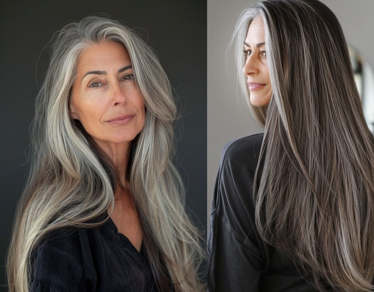 - Γιατί είναι ιδανικό για τα 60+: Αν έχετε γκρίζα ή λευκά μαλλιά, αυτό το στυλ τα αναδεικνύει σε κόσμημα. Το λευκό μαλλί, όταν είναι ίσιο και ενυδατωμένο, δείχνει σαν καθαρό ασήμι.