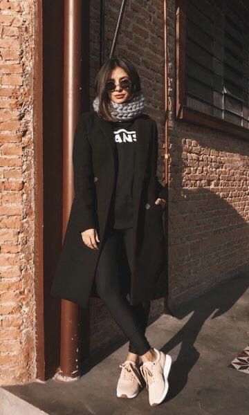 Το μαύρο athleisure look είναι το μυστικό για να δείχνεις ανεπιτήδευτα κομψή ακόμη και στις πιο χαλαρές μέρες. Συνδύασε μαύρο ψηλόμεσο κολάν, oversized φούτερ και μακριό παλτό ή puffer jacket.