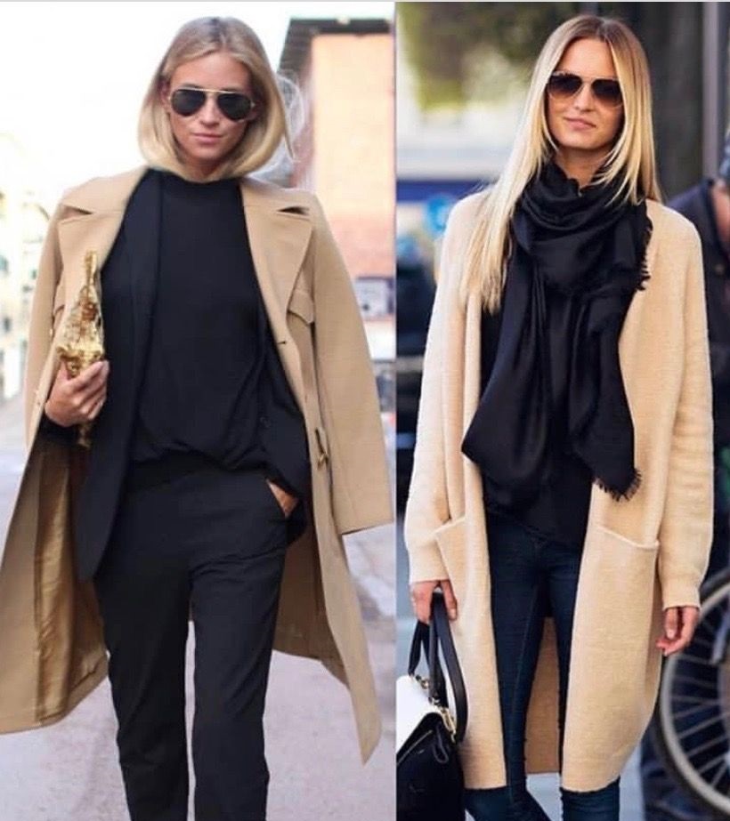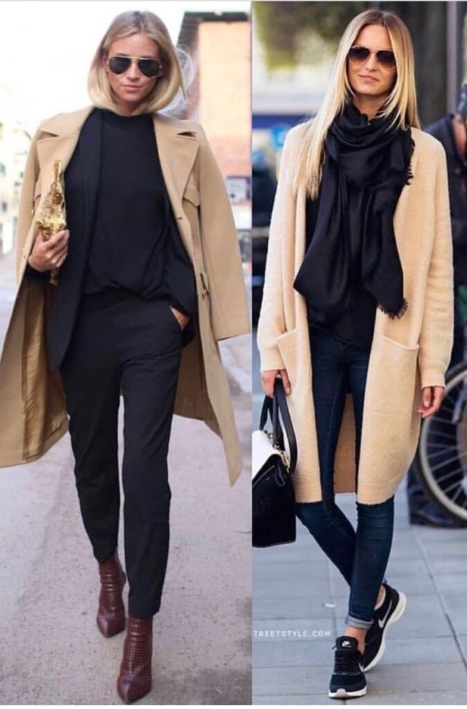 - Καμηλό ή γκρι παλτό για κλασικό chic αποτέλεσμα.