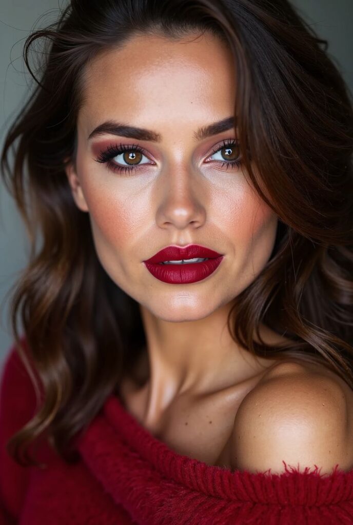 - Γιατί λειτουργεί: Η αντίθεση του καθαρού δέρματος με τα υπέρ-λαμπερά χείλη δημιουργεί ένα “high-fashion” αποτέλεσμα στη στιγμή.