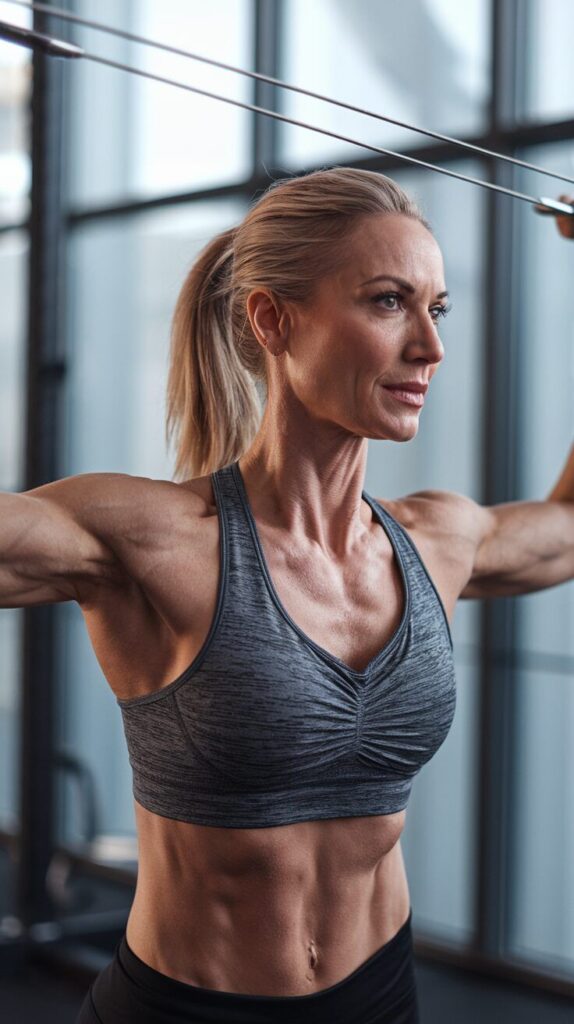 - Εκτέλεση: Στερεώστε το λάστιχο ψηλά (π.χ. σε μια πόρτα ή ένα μονόζυγο). Σταθείτε στο πλάι και τραβήξτε τη λαβή προς το αυτί σας.