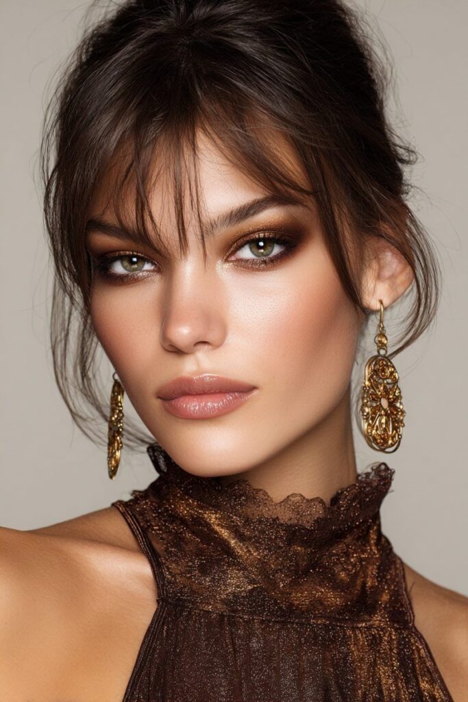 - Γιατί ταιριάζει: Στους πλούσιους τόνους δέρματος, το καφέ smoky eye δείχνει πιο οργανικό και αισθησιακό, δημιουργώντας ένα βλέμμα που μαγνητίζει χωρίς να δείχνει “βαρύ”.
