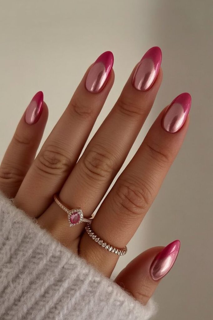 • Το Σχέδιο: Επίλεξε μια απόχρωση ροζ της πούδρας ή σαμπανιζέ. Όταν κινείς το χέρι σου, το νύχι μοιάζει να έχει υφή υφάσματος. Είναι εντυπωσιακό και πολύ πολυτελές.