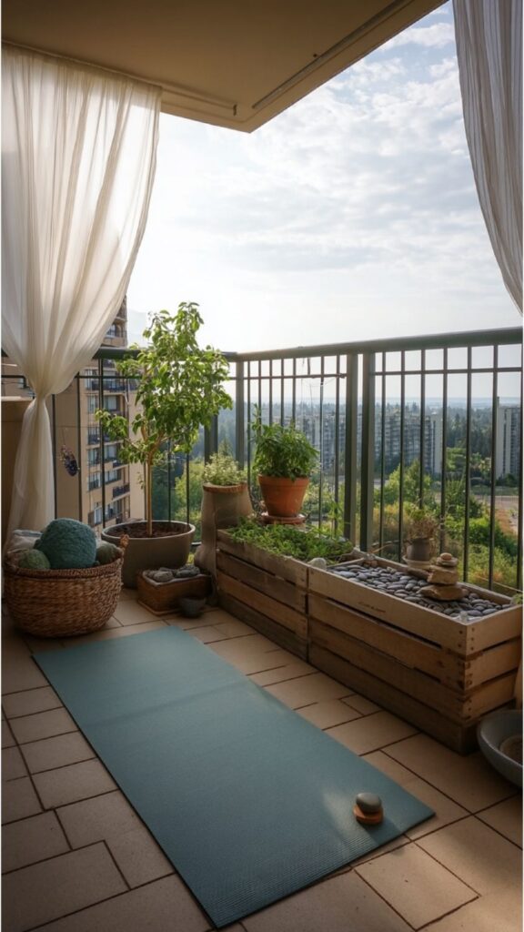 Μετατρέψτε μια άκρη του μπαλκονιού σε χώρο για yoga ή διαλογισμό. Ένα ανθεκτικό στρώμα, μερικά μαξιλάρια δαπέδου και μια μικρή πηγή νερού (επιτραπέζιο σιντριβάνι) δημιουργούν την απόλυτη ζεν ατμόσφαιρα.