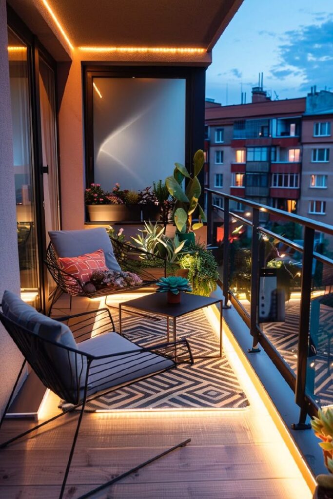 - LED strips: Κρυφός φωτισμός κάτω από το περβάζι ή τις γλάστρες.