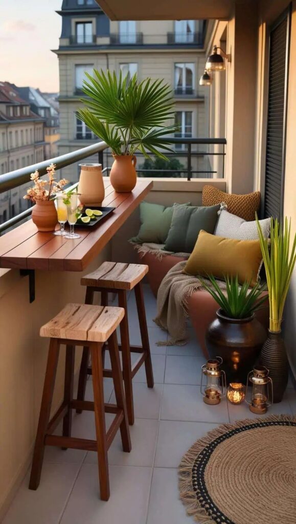 Αν το επιτρέπει ο χώρος, ένα ψηλό “bar table” στην κουπαστή του μπαλκονιού με δύο σκαμπό είναι η τέλεια προσθήκη για cocktail nights. Τα μικρά, φορητά BBQ χωρίς καπνό (smokeless) είναι επίσης must για το 2026.