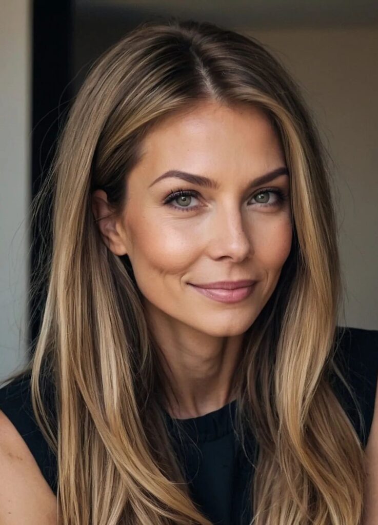 3. Sleek ίσια μαλλιά με χωρίστρα στη μέση