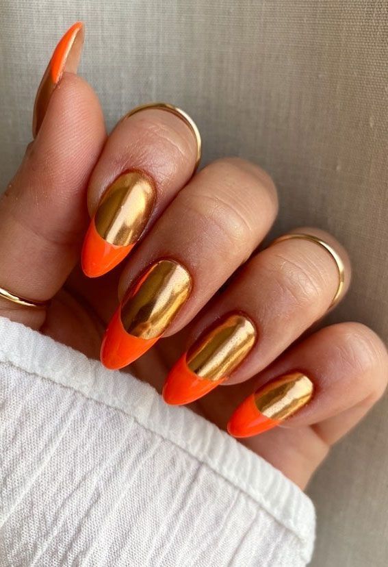 Το apricot crush είναι το χρώμα της χρονιάς. Σε αμυγδαλωτό σχήμα, η προσθήκη μιας στρώσης chrome σκόνης δημιουργεί ένα εφέ που θυμίζει ηλιοβασίλεμα.