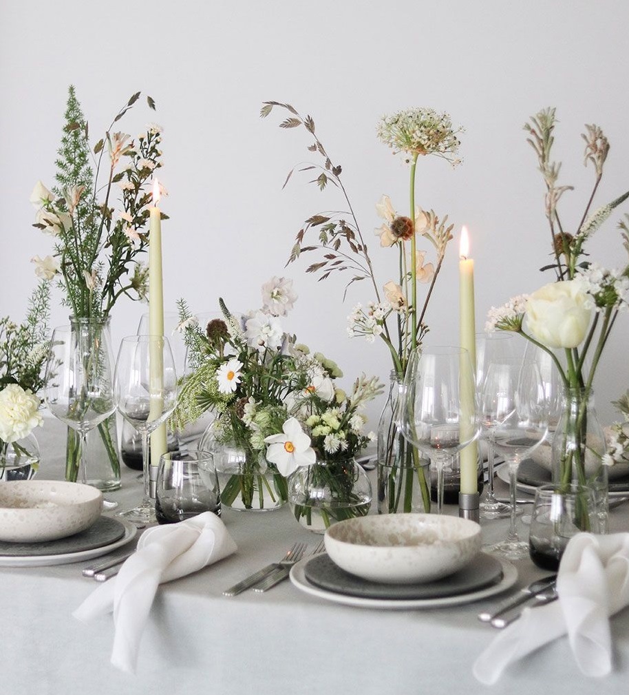- Μεσημεριανό Κυριακής: Κλασικά σερβίτσια, ουδέτερες αποχρώσεις και φρέσκα λουλούδια στη μέση του τραπεζιού.
