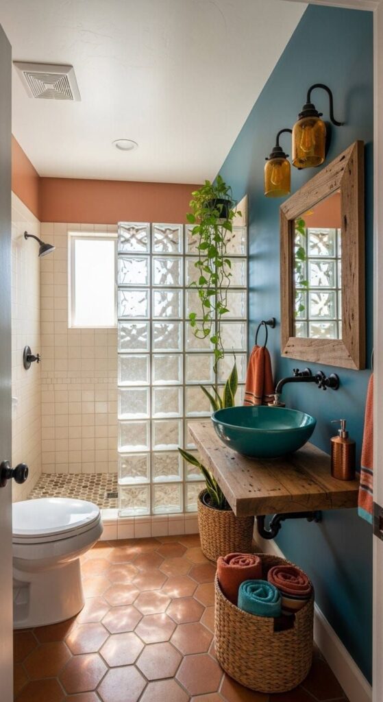 Τέταρτον, χρησιμοποίησε ξύλο. Ένα ξύλινο σκαμπό, ένα bamboo χαλάκι ή ένας ξύλινος δίσκος μπανιέρας (bath caddy) προσθέτουν τη ζεστασιά που λείπει από τα πλακάκια. Βάλε πάνω στον δίσκο ένα κερί, το βιβλίο σου και ένα ποτήρι κρασί. Το αξίζεις!