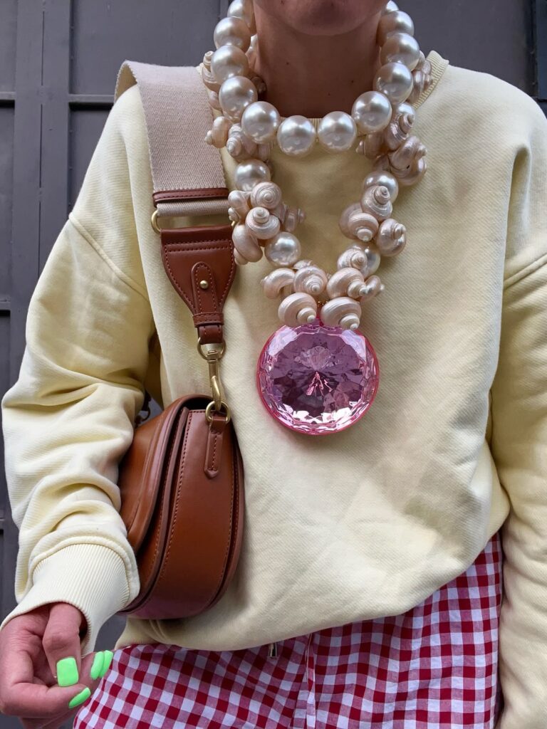 - Το look: Φορέστε το με ένα στενό τοπ και μια ζακέτα (cardigan) με ιδιαίτερα κουμπιά σε “peach fuzz” ή γαλάζιο.