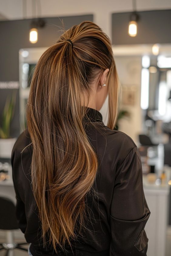 • Γιατί λειτουργεί: Οι ψυχρές ανταύγειες εξισορροπούν τη φυσική κοκκινίλα των σκούρων μαλλιών, δίνοντας ένα πολύ φυσικό αποτέλεσμα.
