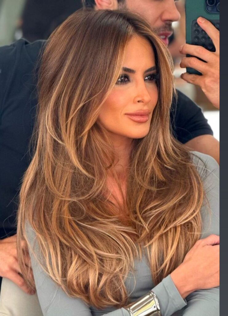 Αυτό το look είναι εμπνευσμένο από τα signature μαλλιά της Jennifer Lopez, που συχνά επιλέγει caramel highlights για να δώσει κίνηση και λάμψη στο brunette της. Το μυστικό είναι οι διακριτικές, λεπτές ανταύγειες που μπαίνουν γύρω από το πρόσωπο (face framing highlights) και κάνουν το δέρμα να δείχνει πιο φωτεινό.