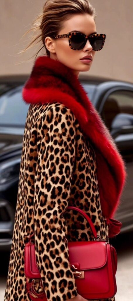 Ένα leopard παλτό ή faux fur jacket είναι ίσως ο πιο εύκολος τρόπος να φορέσεις το trend χωρίς ρίσκο. Συνδυάζεται ιδανικά με total black σύνολο, ίσια τζιν, μαύρο πλεκτό και ankle boots. Το leopard εδώ λειτουργεί σαν statement αλλά παραμένει κομψό, ειδικά όταν οι γραμμές είναι καθαρές.