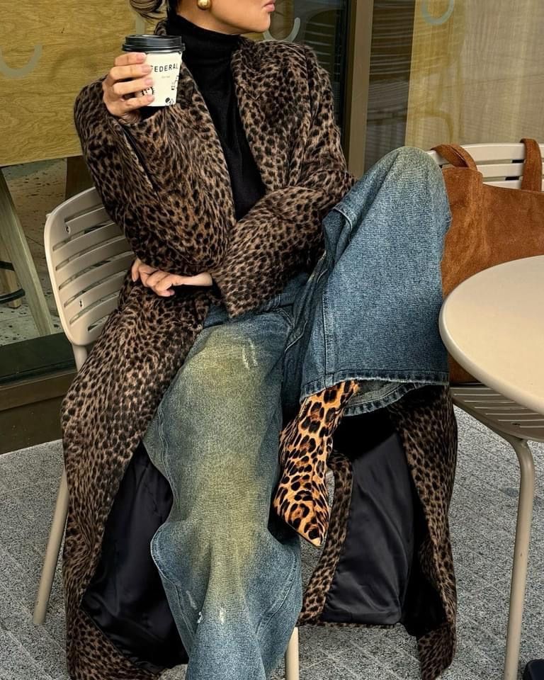 Ένα leopard παλτό ή faux fur jacket είναι ίσως ο πιο εύκολος τρόπος να φορέσεις το trend χωρίς ρίσκο. Συνδυάζεται ιδανικά με total black σύνολο, ίσια τζιν, μαύρο πλεκτό και ankle boots. Το leopard εδώ λειτουργεί σαν statement αλλά παραμένει κομψό, ειδικά όταν οι γραμμές είναι καθαρές.