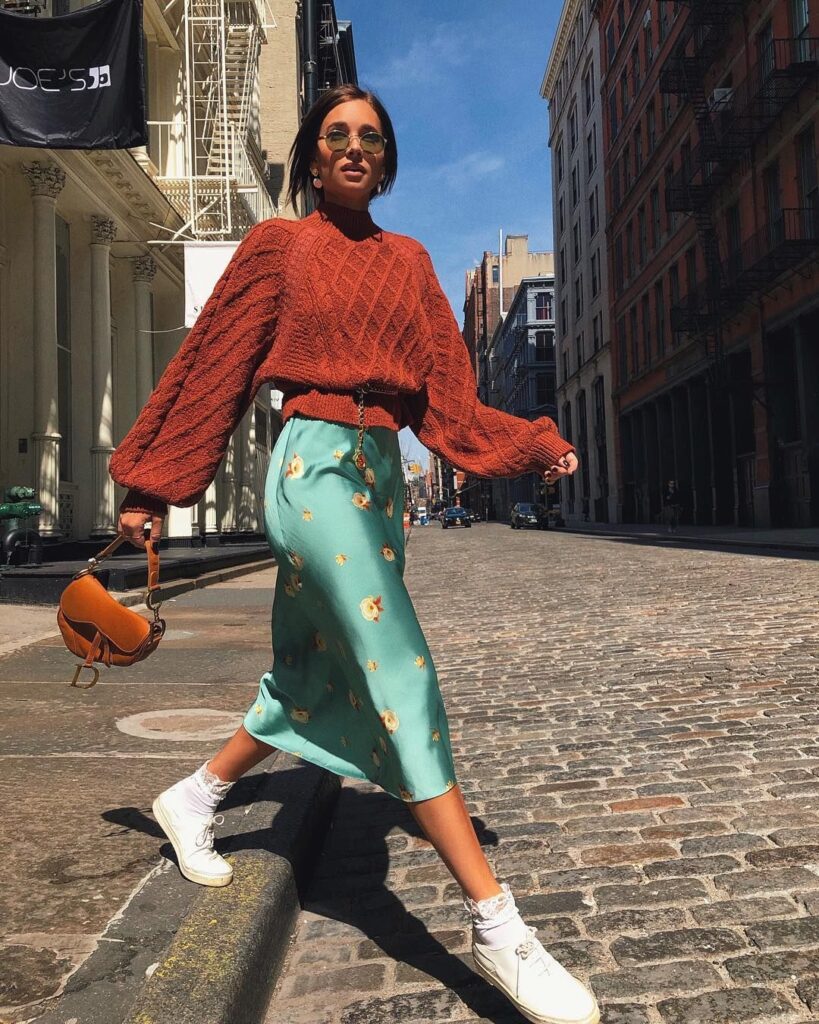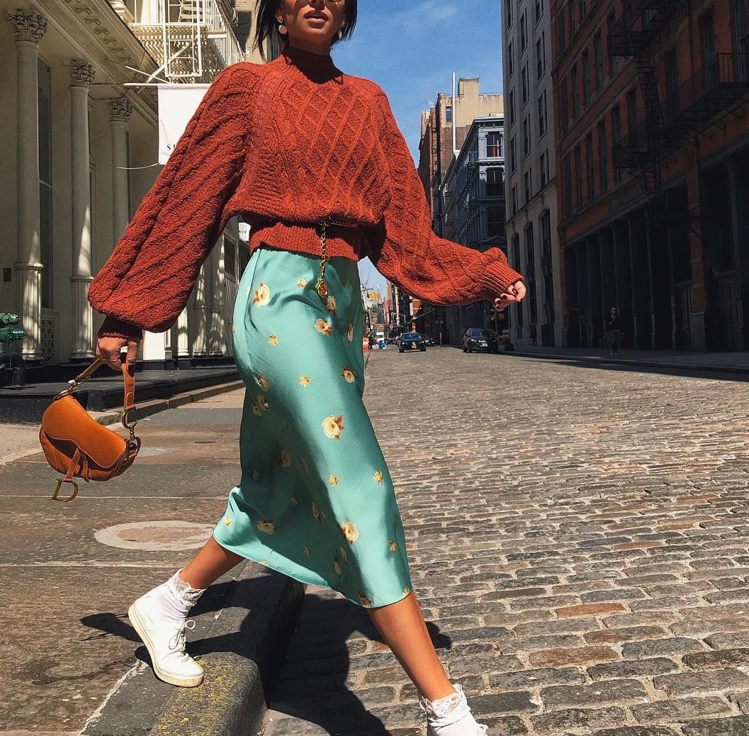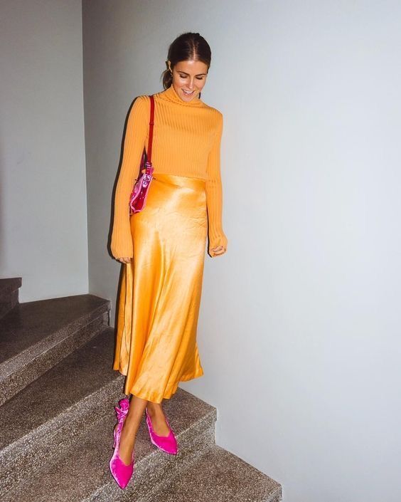 - Η ιδέα: Μια πλισέ midi φούστα σε αυτό το χρώμα, συνδυασμένη με ένα λευκό t-shirt και sneakers.