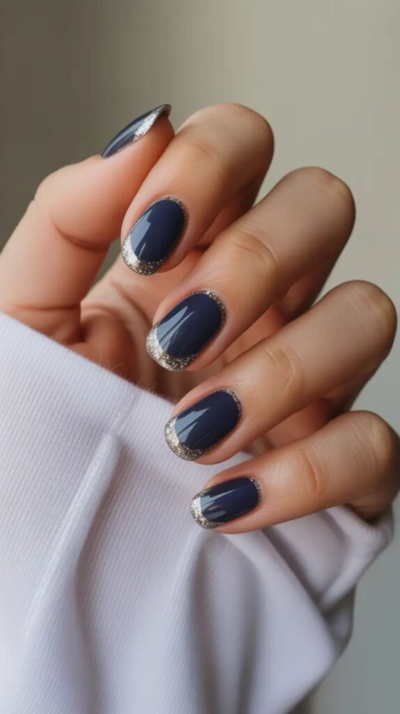 Μανικιούρ σε βαθύ ναυτικό μπλε με χρυσές λεπτομέρειες – Η τοπ ταση για τον Φλεβαρη 2025