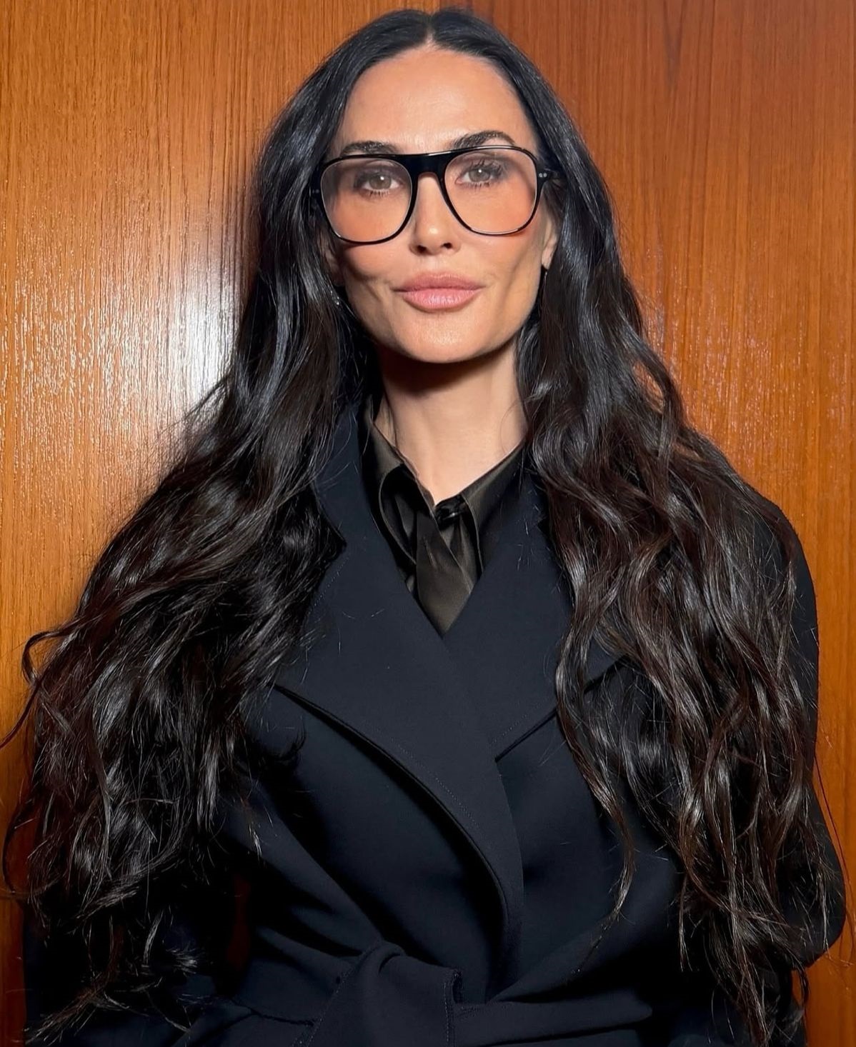 Στα 63 της, η Demi διατηρεί τα μακριά, μαύρα μαλλιά της, καταρρίπτοντας το στερεότυπο ότι οι μεγαλύτερες γυναίκες πρέπει να υιοθετούν κοντά κουρέματα.