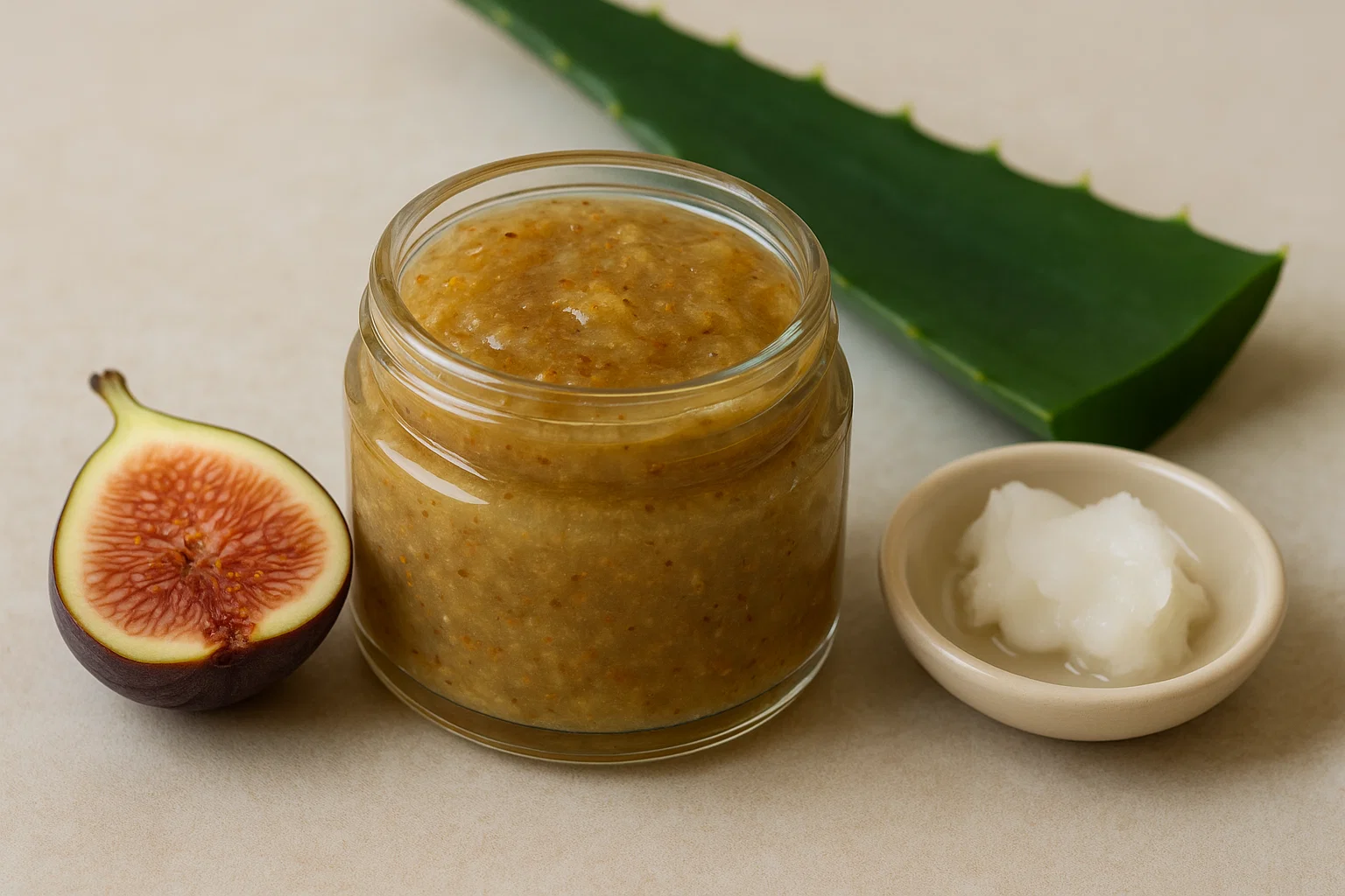 Το σύκο δεν είναι μόνο ένα υπέροχο καλοκαιρινό φρούτο, είναι και πλούσιο σε αντιοξειδωτικά και φυσικά σάκχαρα που ενυδατώνουν βαθιά την επιδερμίδα. Μαζί με την αλόη βέρα, το λάδι καρύδας και το μέλι, δημιουργεί ένα ενισχυμένο μείγμα που: