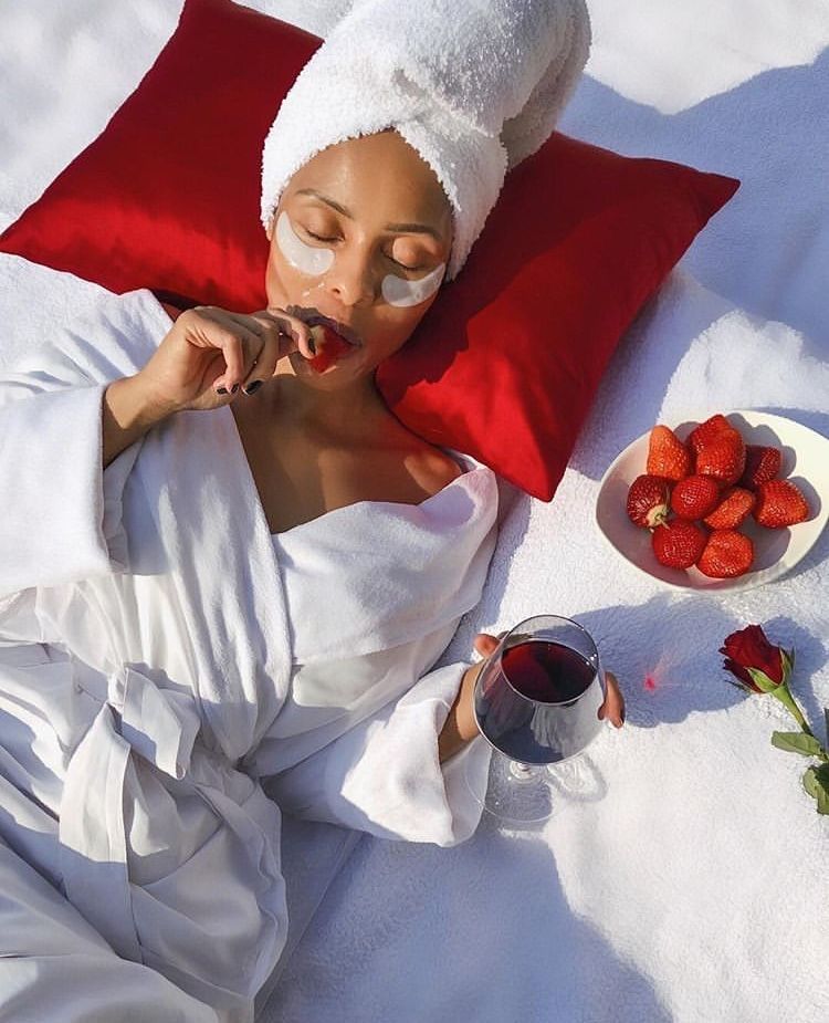 Φόρα το μπουρνούζι σου, φτιάξε ένα χαμομήλι ή πράσινο τσάι και βάλε απαλή μουσική. Κλείσε τα μάτια και πάρε βαθιές αναπνοές. Μπορείς να εφαρμόσεις και λίγη ενυδατική κρέμα προσώπου ή balm χειλιών, όπως αυτά που φτιάχνεις μόνη σου (δες «Φτιάξε μόνη σου lip balm: Εύκολη συνταγή με 3 συστατικά»).