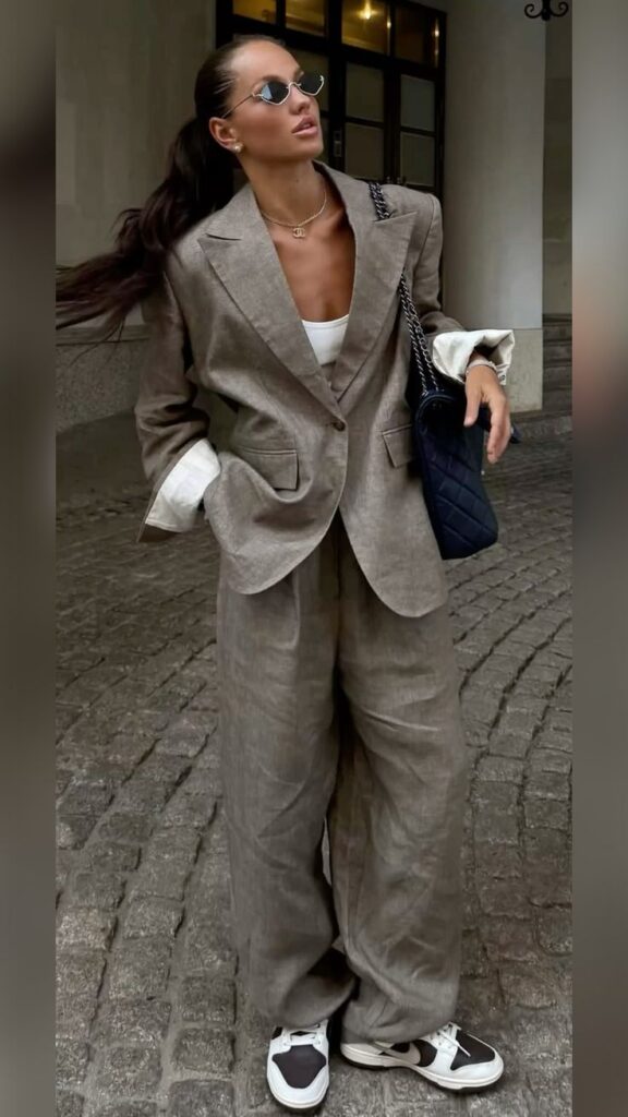 • Styling Tip: Σηκώστε τα μανίκια μέχρι τους αγκώνες και προσθέστε “chunky” χρυσά βραχιόλια. Αυτή η μικρή λεπτομέρεια μετατρέπει το “office look” σε “street style”.