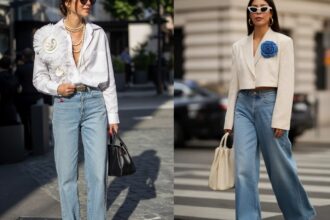 - Με t-shirt και structured σακάκι για μοντέρνα εμφάνιση.