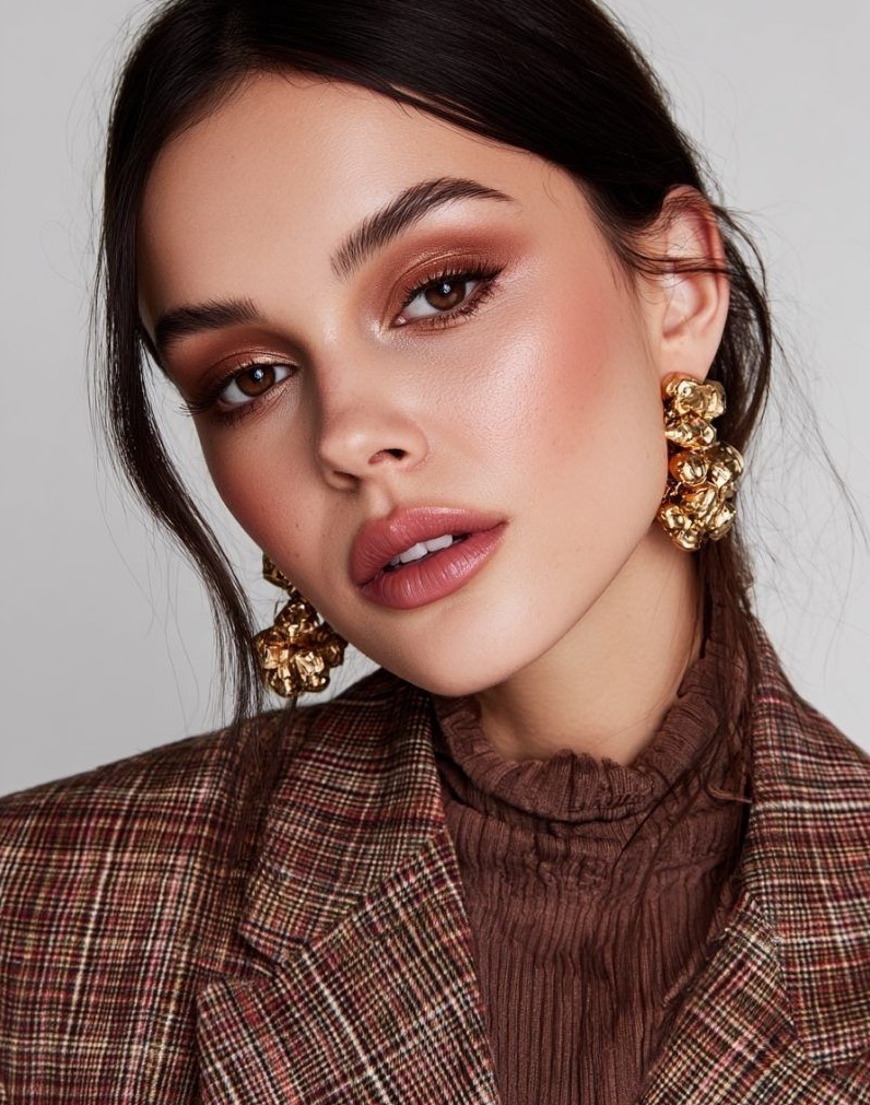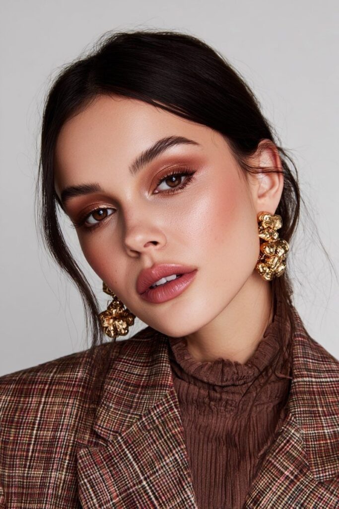 Άφησε τις σκούρες σκιές και τα έντονα eyeliner στην άκρη. Προτίμησε απαλές nude ή ροδακινί αποχρώσεις, λίγη μάσκαρα και, αν θέλεις, μια πολύ λεπτή γραμμή καφέ eyeliner κοντά στις ρίζες των βλεφαρίδων. Το αποτέλεσμα είναι φωτεινό, φυσικό και νεανικό.Για extra σταθερότητα, μπορείς να ακολουθήσεις τα tips του άρθρου «Eyeliner tricks για πιο σταθερό αποτέλεσμα όλη μέρα».