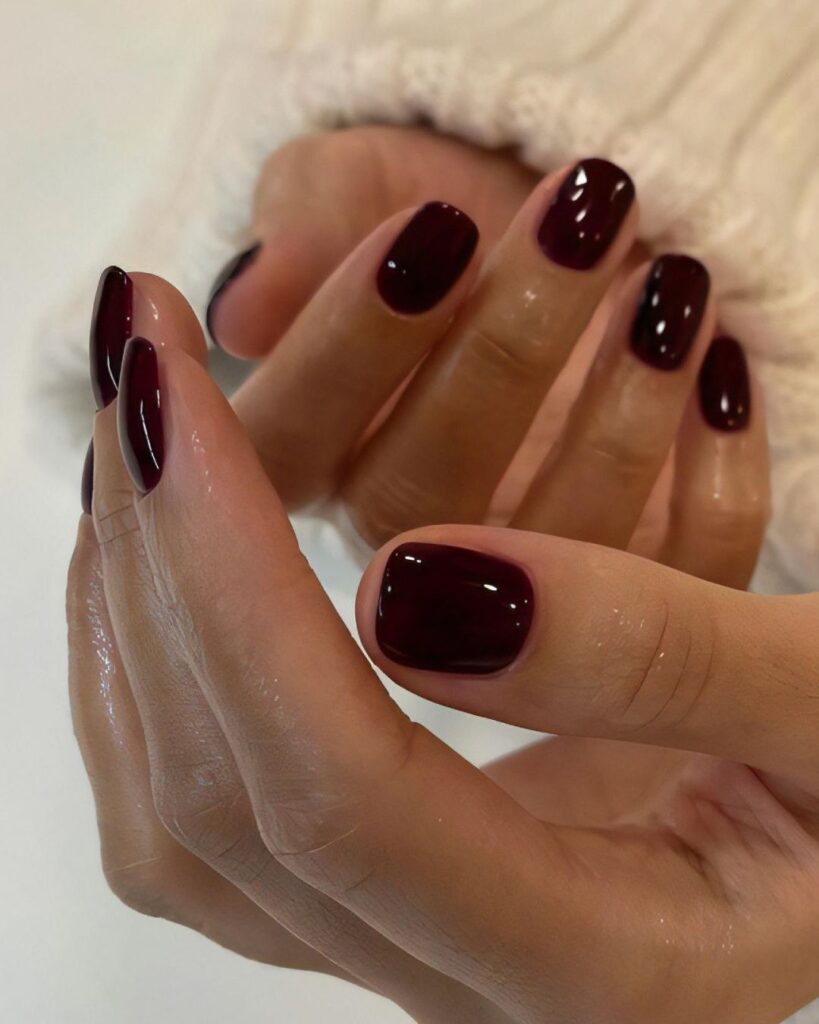 Οι βαθιές αποχρώσεις δεν λείπουν από τα trends. Το πράσινο του πεύκου και το μπορντό είναι τα χρώματα που αντιπροσωπεύουν τον χειμώνα και τις γιορτές. Ειδικά σε glossy φινίρισμα, δείχνουν πολυτελή και sophisticated. Μπορείς να τα συνδυάσεις με glitter accents για πιο γιορτινή διάθεση.