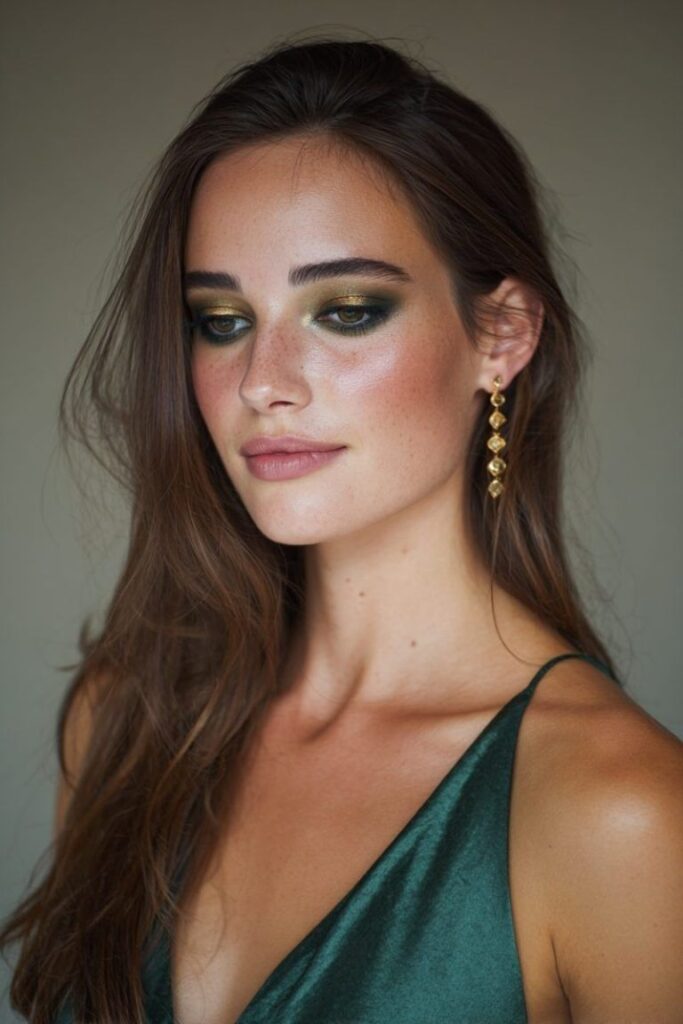 • Γιατί λειτουργεί: Το μπρονζέ δίνει την ένταση του smokey look αλλά διατηρεί τη ζεστασιά που χρειάζεται η πράσινη ίριδα για να ξεχωρίσει.