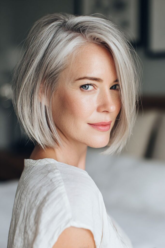 Το Lob παραμένει ο βασιλιάς των κουρέματων για τις γυναίκες άνω των 40. Το 2026, η τάση θέλει το μήκος να σταματά ακριβώς στις κλείδες, με τις άκρες να είναι ελαφρώς φιλαρισμένες αντί για αυστηρά ίσιες.
