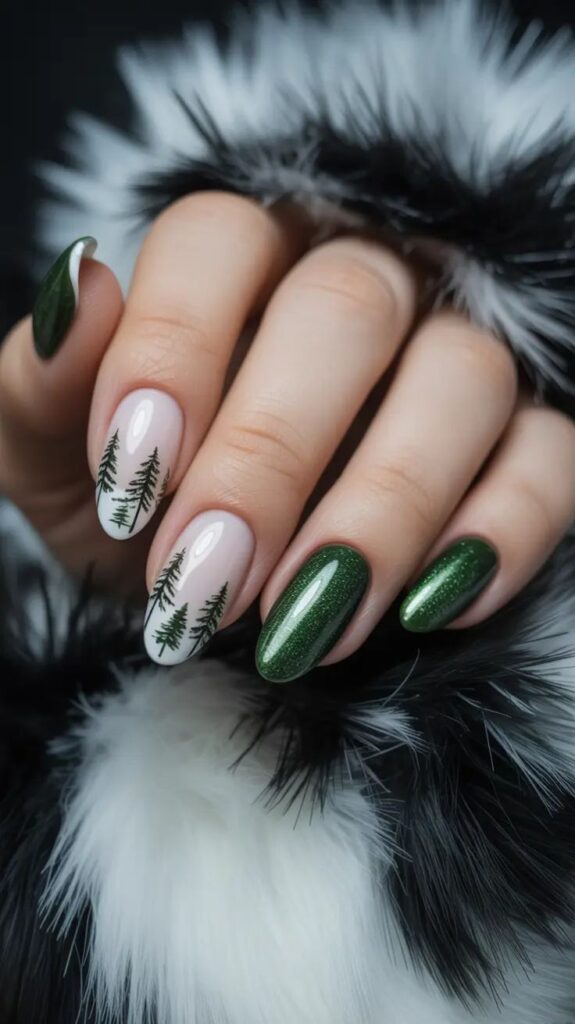 Ωστόσο, για όσες θέλουν κάτι πιο understated, το soft matte παραμένει δυνατό trend. Το matte suede finish πάνω σε βαθύ καφέ ή σκούρο πράσινο προσφέρει μια μοναδική cozy αίσθηση – σαν χειμωνιάτικο ύφασμα πάνω στο νύχι.