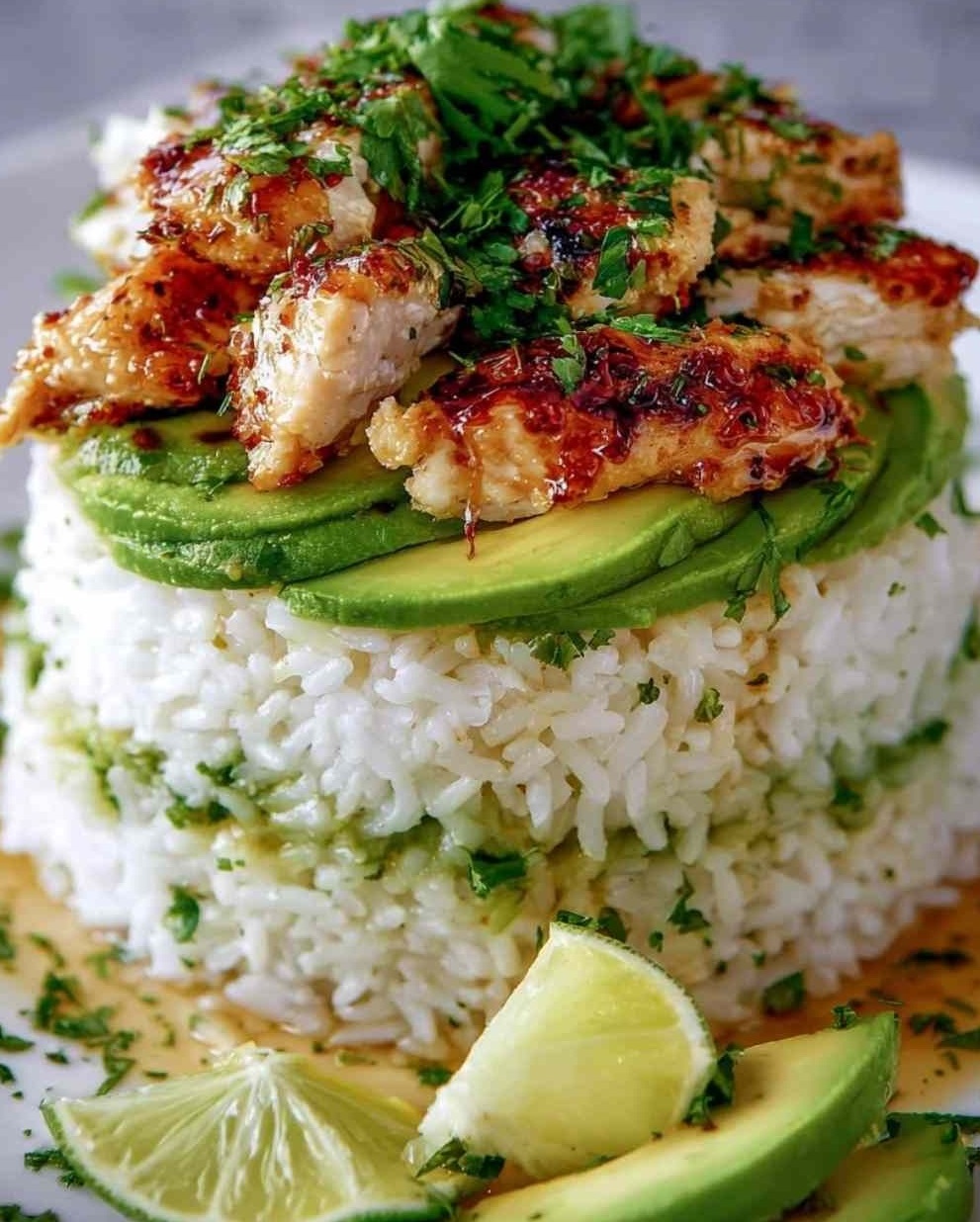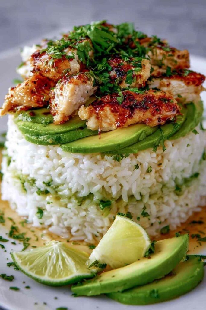 Honey lime chicken & avocado rice stack: Η τέχνη του υγιεινού layering