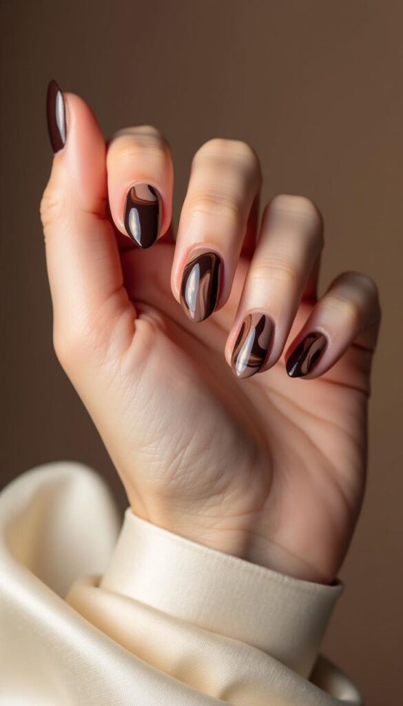 Αν τα νύχια είχαν γεύση, αυτή η τάση θα ήταν σοκολάτα με καραμέλα. Τα Chocolate Waves nails είναι η πιο λαχταριστή και πολυτελής επιλογή της σεζόν – ένα μανικιούρ που συνδυάζει ζεστά καφέ με ρευστές, καραμελέ αποχρώσεις, δημιουργώντας την αίσθηση λιωμένης σοκολάτας. Είναι chic, cozy και ιδανικό για το φθινόπωρο και τον χειμώνα του 2025-2026.