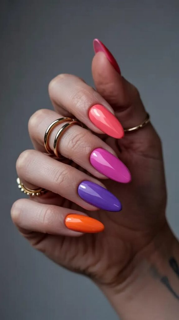 - Το σχήμα: Για ένα “chic” αποτέλεσμα, επιλέξτε το “almond” (αμυγδαλωτό) ή το “short round” (κοντό στρογγυλό). Αυτά τα σχήματα δείχνουν τα δάχτυλα πιο μακριά και κομψά.