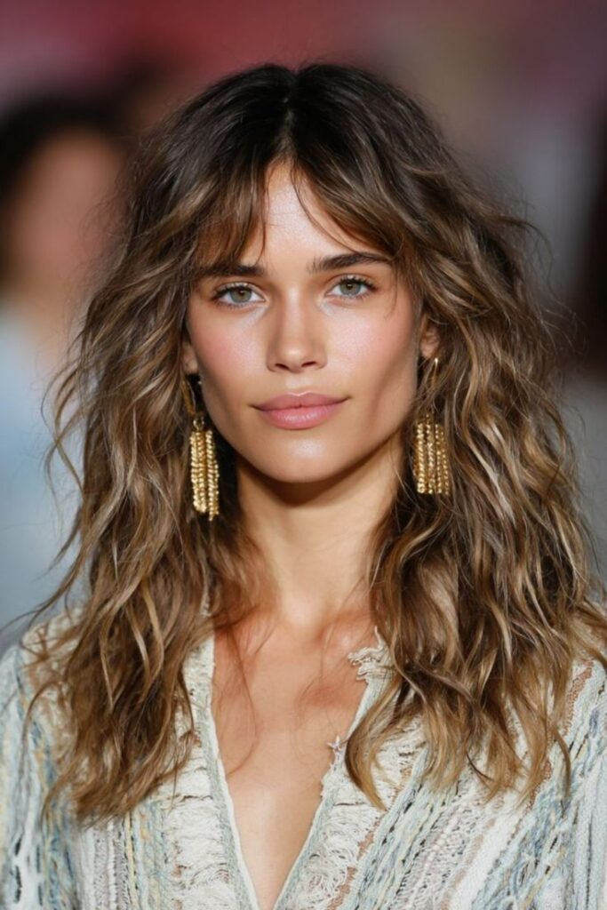 • Πώς να το πετύχεις: Χρησιμοποίησε ένα χοντρό ψαλίδι για μπούκλες, τυλίγοντας τυχαίες τούφες προς διαφορετικές κατευθύνσεις. Ψέκασε με Sea Salt Spray (σπρέι αλατιού) για να δώσεις αυτή την “άγρια” υφή.