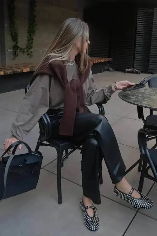 Οι ballerinas, από την άλλη, έχουν μια πιο θηλυκή και διακριτική αισθητική. Δείχνουν υπέροχες με φορέματα και φούστες, αλλά μπορούν να λειτουργήσουν εξίσου καλά και με παντελόνια, αρκεί το styling να παραμένει ισορροπημένο. Ένα midi φόρεμα με ballerinas δείχνει αβίαστα κομψό, ειδικά όταν οι γραμμές είναι καθαρές και τα χρώματα ήρεμα. Το ίδιο και μια midi φούστα με ένα απλό τοπ και δομημένη τσάντα.