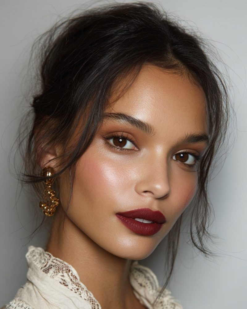 Το κλασικό smokey eye αποκτά νέα ζωή με μπρονζέ και καφέ σκιές που ταιριάζουν απόλυτα στην olive επιδερμίδα, δημιουργώντας βάθος χωρίς σκληρότητα.