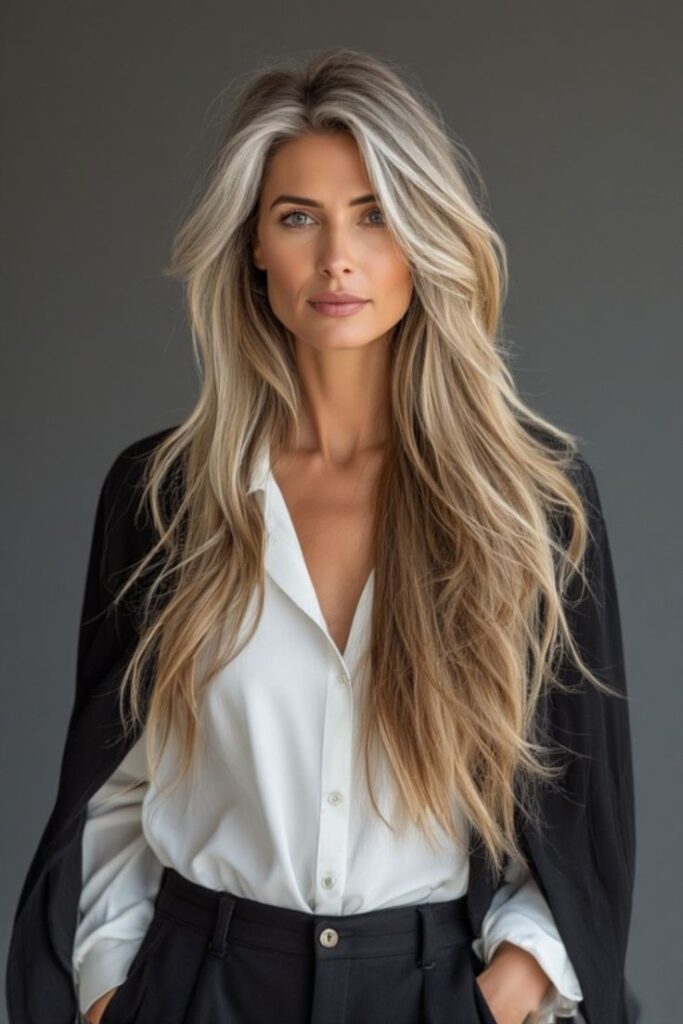 - Μην φοβάστε το γκρίζο: Αν αποφασίσετε να αφήσετε τα φυσικά σας γκρίζα μαλλιά, επενδύστε σε ένα εξαιρετικό κούρεμα και σε μωβ σαμπουάν (silver shampoo) για να παραμένουν λαμπερά και όχι κίτρινα.