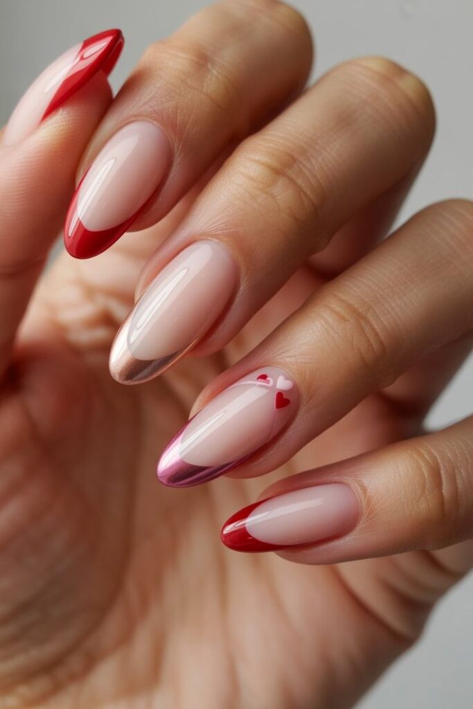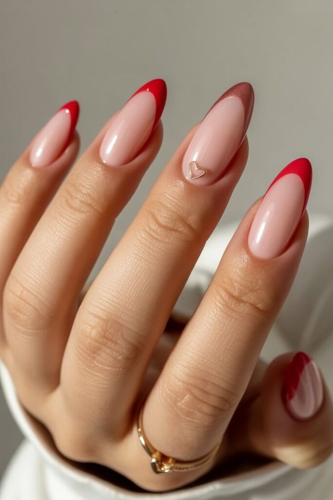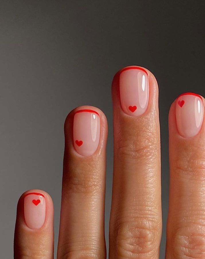 • Το Look: Κάντε ένα κλασικό Micro French (π.χ. λευκό ή κόκκινο) σε όλα τα νύχια. Στον παράμεσο μόνο, προσθέστε μια μικροσκοπική καρδιά, είτε κοντά στη γραμμή του γαλλικού είτε στη βάση του νυχιού (κοντά στο επωνύχιο).