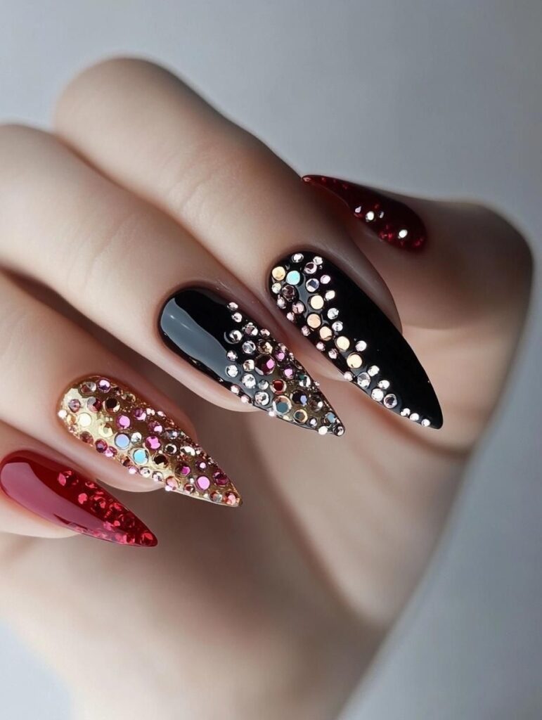 - Μαύρο – μικρά ασημί ή διάφανα rhinestones: το υπέρτατο contrast.