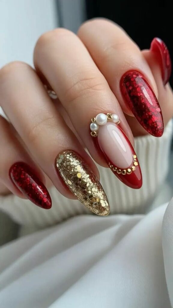 - Burgundy – χρυσά στρας: ιδανικός συνδυασμός για ένα πιο χειμερινό, πολυτελές look, όπως φαίνεται και στα trends του Winter toe nails 2025-2026.