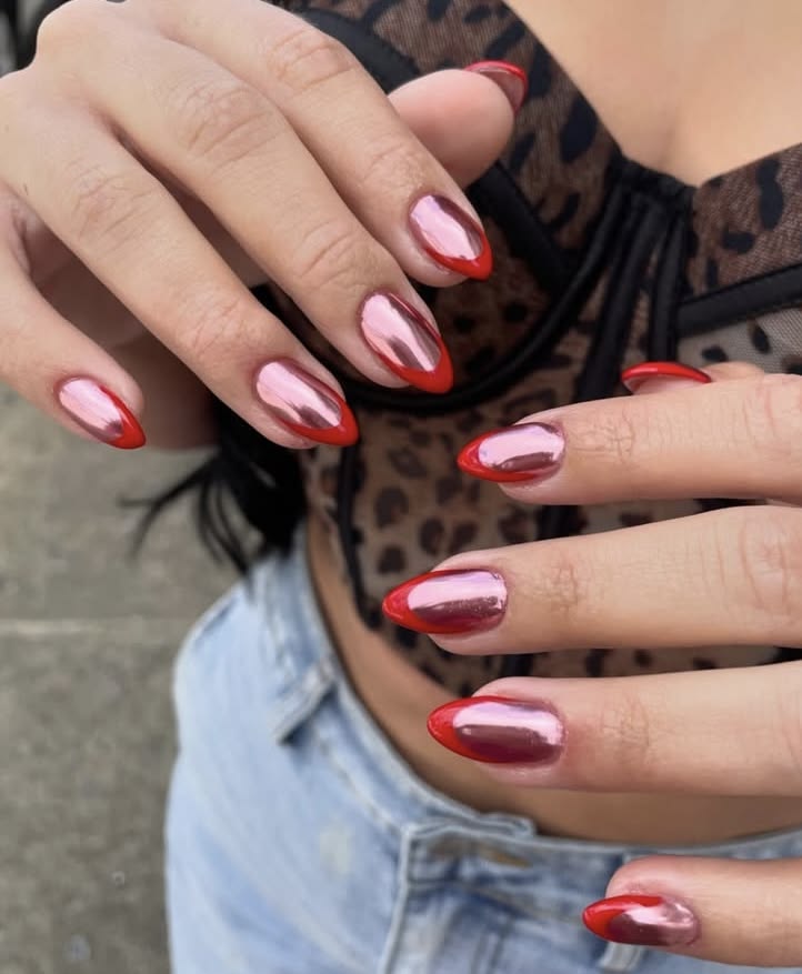 - Soft almond: Το αμυγδαλωτό σχήμα επιμηκύνει τα δάχτυλα, ενώ η chrome λάμψη το κάνει να δείχνει αιθέριο.