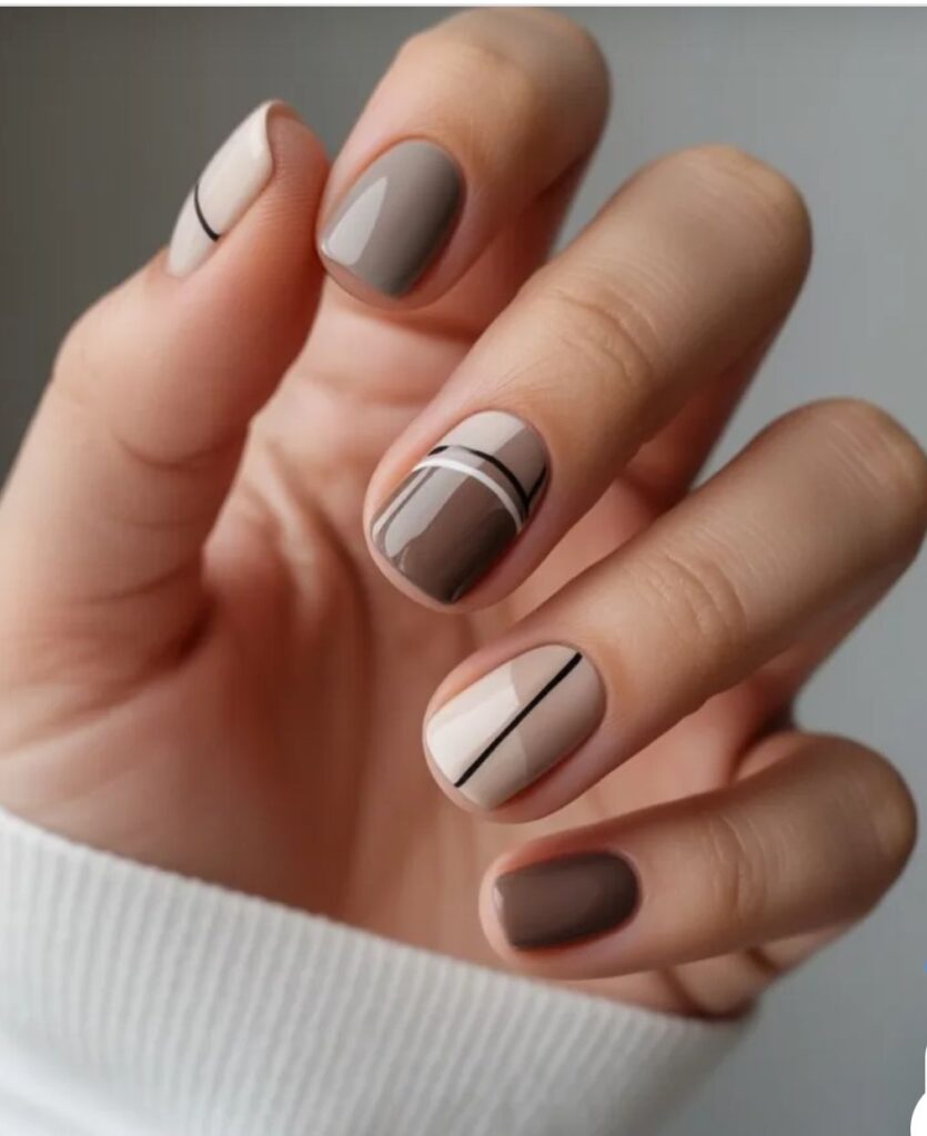 2. Abstract waves: Χρησιμοποίησε ένα λεπτό πινέλο (ή ακόμη και μια οδοντογλυφίδα) για να δημιουργήσεις κύματα ή καμπύλες γραμμές σε δυο χρώματα. Είναι το πιο “Instagram friendly” trend του 2025.